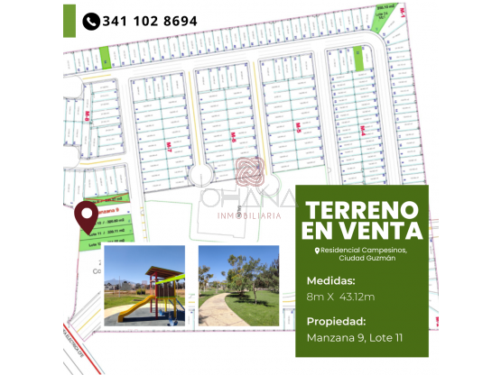 Pesos MexicanosTerreno en Venta en Ciudad Guzmán Jalisco, dentro del Fraccionamiento Residencial Campesinos, con vista panorámica al Nevado de Colima y cerca de areas comerciales, el fraccionamiento cuenta con su propia área comercial, restaurante, salón de usos múltiples, canchas deportivas y área infantil. A unos cuantos metros de Cinepolis y del Tecnológico de Ciudad Guzmán Jalisco.